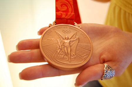 U.S. trap shooter Corey Cogdell showing her bronze medal
