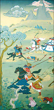 Handed down by generations of ballad singers in Sichuan, Yunnan, Tibet, Qinghai, Xinjiang and Inner Mongolia for more than 1,000 years, The Epic of King Gesar is considered one of the world's greatest literary epics. It tells of how the half-human, half-god Tibetan king conquered the devils of other tribes and sought to help ordinary people.