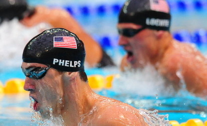 US swimmers Michael Phelps (L) and Ryan Lochte swim during the men's 200m individual medley swimming final at the National Aquatics Center during the 2008 Beijing Olympic Games in Beijing on August 15, 2008. [Agencies]