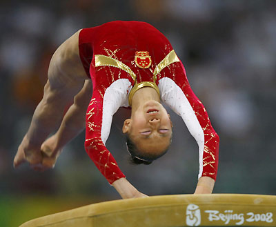 Yang Yilin of China competes on the vault during the women's individual all-around artistic gymnastics final at the Beijing 2008 Olympic Games August 15, 2008. [Agencies]