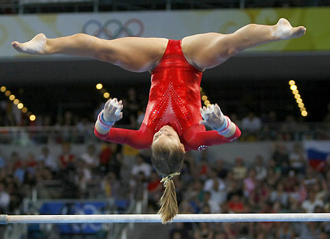 Shawn Johnson of the U.S. competes on the uneven bars during the women's individual all-around artistic gymnastics final at the Beijing 2008 Olympic Games August 15, 2008. [Agencies]