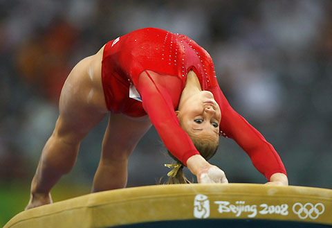 Shawn Johnson of the U.S. competes on the vault during the women's individual all-around artistic gymnastics final at the Beijing 2008 Olympic Games August 15, 2008. [Agencies]