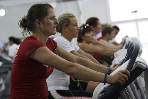 Athletes from different countries exercise inside the Olympic Village ahead of the Beijing 2008 Olympic Games, August 5, 2008.[Agencies]