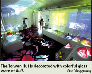 An impressive collection of glassware made of liuli, or colored glaze, awes visitors inside the Taiwan Hut.