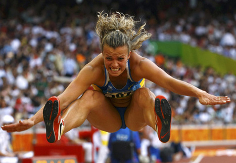 Nataliia Dobrynska of Ukraine competes in the long jump event of the women's heptathlon in the athletics competition in the National Stadium at the Beijing 2008 Olympic Games August 16, 2008. [Agencies]