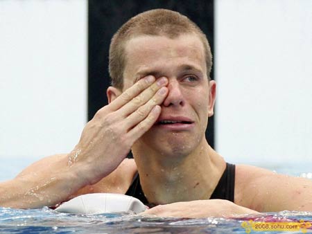Cesar Augusto Cielo Filho wiped away tears many times after receiving his gold medal in men's 50m freestyle swimming final. This is also the first gold medal for Brazil in Beijing Olympic Games. Many people are moved by his tears, which contains lots of things.