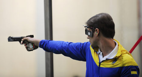Oleksandr Petriv of Ukraine competes to win the men's 25m rapid fire pistol final at the Beijing 2008 Olympic Games August 16, 2008. [Agencies]