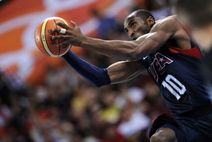 US Kobe Bryant jumps for the basket against Spain during the men preliminary round group B basketball match of the Beijing 2008 Olympic Games at the Olympic basketball Arena in Beijing on August 16, 2008. US won the match 119-82. [Agencies]