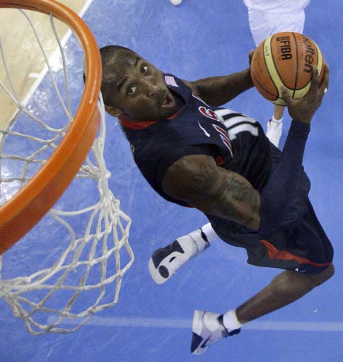 Kobe Bryant of the US goes up for a dunk against Spain in their men's preliminary basketball game against China at the 2008 Beijing Olympic Games on August 16, 2008.[Agencies]