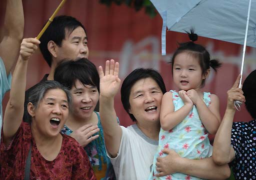 People cheer the competitors of the women's marathon of the 2008 Beijing Olympic Games on August 17, 2008 in Beijing. Constantina Tomescu gave Romania their first ever women's Olympic marathon title here on Sunday as she won in a time of 2hours 26minutes 44second. [Agencies]