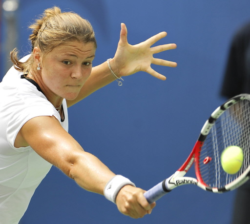 Dinara Safina from Russia returns the ball against Elena Dementieva also from Russia during the women's single's final tennis match at the Olympic Green Tennis Centre in Beijing on August 17, 2008.[Agencies]