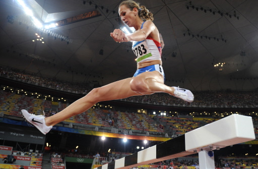 | Russia's Gulnara Samitova-Galkina competes during the women's 3000m steeplechase final at the National Stadium as part of the 2008 Beijing Olympic Games on August 17, 2008. [Agencies] |