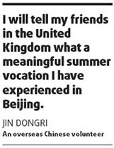 "I will tell my friends in the United Kingdom what a meaningful summer vocation I have experienced in Beijing," said Jin.