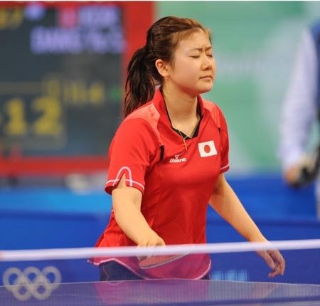 Fukuhara Ai of Japan competes during the women's team bronze medal contest between Japan and the Republic of Korea of Beijing Olympic Games table tennis event in Beijing, China, Aug. 17, 2008. The Republic of Korea beat Japan 3-0 and won the bronze medal in this event. [Xinhua]