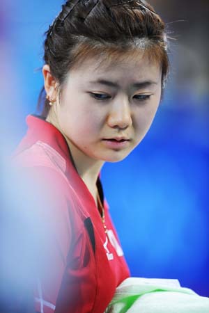 Fukuhara Ai of Japan competes during the women's team bronze medal contest between Japan and the Republic of Korea of Beijing Olympic Games table tennis event in Beijing, China, Aug. 17, 2008. The Republic of Korea beat Japan 3-0 and won the bronze medal in this event. [Xinhua]