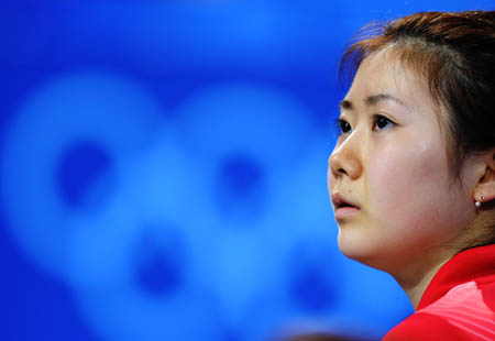 Fukuhara Ai of Japan competes during the women's team bronze medal contest between Japan and the Republic of Korea of Beijing Olympic Games table tennis event in Beijing, China, Aug. 17, 2008. The Republic of Korea beat Japan 3-0 and won the bronze medal in this event. [Xinhua]