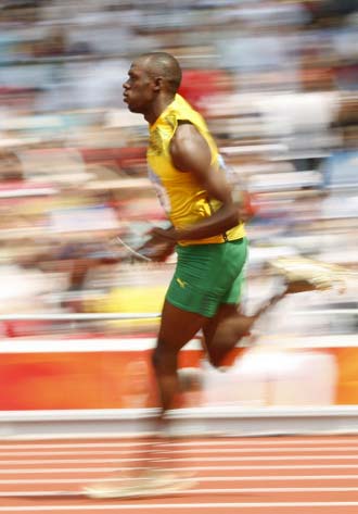 Jamaica's Usain Bolt competes during the first round of the men's 200m heats at the "Bird's Nest" National Stadium during the 2008 Beijing Olympic Games on August 18, 2008. [Agencies]