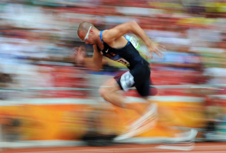 US athlete Jeremy Wariner leaves the blocks at the start of heat 7 of the first round of the men's 400m heats at the "Bird's Nest" National Stadium during the 2008 Beijing Olympic Games on August 18, 2008.[Agencies]
