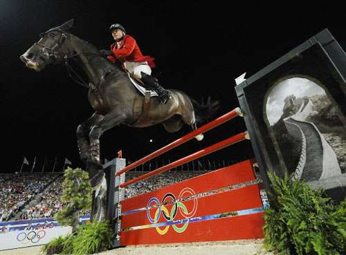 US Will Simpson rides with "Carlsson vom Dach" in the final round Jumping Individual of the 2008 Beijing Olympic Games on August 18, 2008 in Beijing. 51 Riders compete in the event.[Agencies]