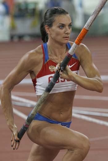 Yelena Isinbayeva of Russia competes during her women's pole vault of the athletics competition in the National Stadium at the Beijing 2008 Olympic Games August 18, 2008. [Agencies]