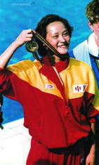 Discovered at age 9 by coach Yang Qiang while she was playing around in a swimming pool after gymnastics training.