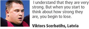 "I understand that they are very strong. But when you start to think about how strong they are, you begin to lose," Scerbatihs said. "Once you think, 'he's stronger than me,' you will lose."