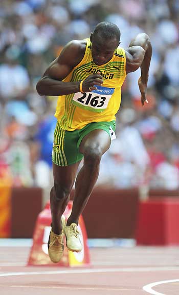 Usain Bolt of Jamaica sprints during his men's 200m heat of the athletics competition in the National Stadium at the Beijing 2008 Olympic Games August 18, 2008.[Agencies]