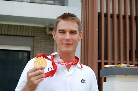 Eller, a 26-year-old fromTexas, wins the gold medal in the men's double trap shooting, August 12, 2008. [China Daily]