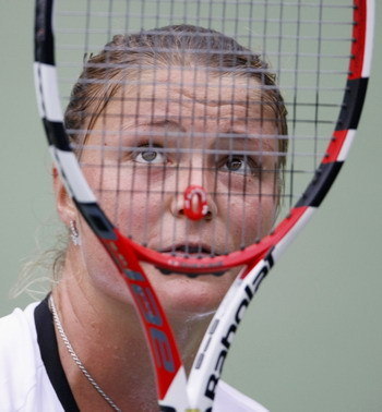 Dinara Safina of Russia reacts during her women's singles final tennis match against her compatriot Elena Dementieva at the Beijing 2008 Olympic Games August 17, 2008. [Agencies]