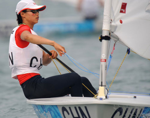 Sailor Xu Lijia of China races to her bronze medal in the Laser Radial class at the 2008 Beijing Olympic Games on August 19, 2008 in Qingdao, China.[Agencies]