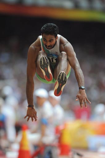 India's Renjith Maheswary competes during the triple jump qualifyers round A.