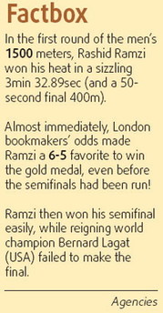 Kenyan-born American Bernard Lagat, who edged Ramzi in the 2007 World Championships, failed to reach the final.