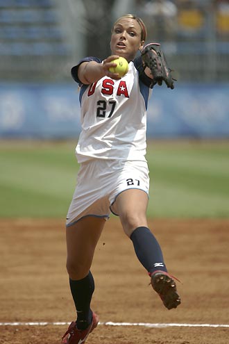 Jennie Finch of the US pitches to Venezuela during a women's preliminaries softball game at the Beijing 2008 Olympic Games in this August 12, 2008 file photo. [Agencies]