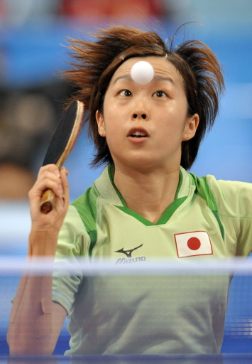 Japan's Haruna Fukuoka plays against Thailand's Nanthana Komwong in their women's singles table tennis preliminary round match at the 2008 Beijing Olympic Games on August 20, 2008. [Agencies]