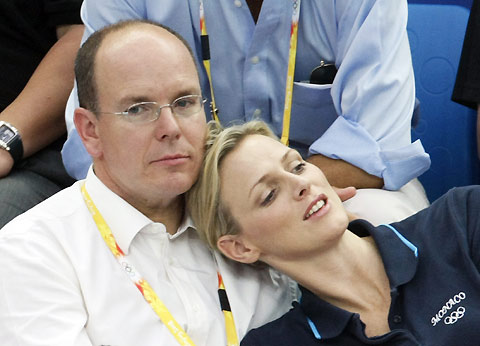 Prince Albert of Monaco and his friend Charlene Wittstock attend the synchronisedswimmingduet free routine final at the Beijing 2008 Olympic Games August 20, 2008. Wittstock is a former South African Olympic swimmer. [Agencies]