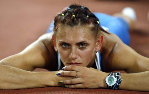 Ukraine's Liudmyla Blonska relaxes during the women's shot put of the heptathlon at the National Stadium as part of the 2008 Beijing Olympic Games on August 15, 2008. [Agencies]
