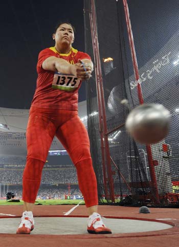 Zhang Wenxiu of China competes in her women's hammer throw final of the athletics competition in the National Stadium at the Beijing 2008 Olympic Games August 20, 2008. [Agencies]