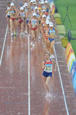 Russian Olga Kaniskina competes during the women's 20km Walk at the National stadium as part of the 2008 Beijing Olympic Games on August 21, 2008. [Agencies]