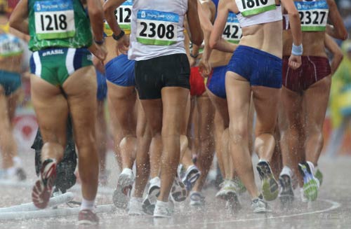 Athletes compete during the women's 20km walk at the "Bird's Nest" National Stadium during the 2008 Beijing Olympic Games on August 21, 2008. [Agencies]