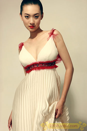 Yu Pei, who introduces Chinese delegation during the opening ceremony of Beijing Olympic Games , poses for photographers.[www.sohu.com]