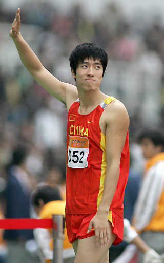 This file photo taken on November 2, 2005 shows Liu Xiang of China waving to the crowd after the men's 110 meter hurdles final at the 4th East Asian Games in Macau. [Agencies]