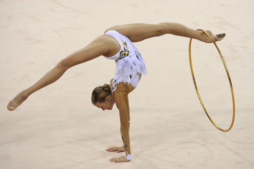 Russia's Olga Kapranova competes in the individual all-around qualification of the rhythmic gymnastics at the Beijing 2008 Olympic Games in Beijing on August 21, 2008.[Agencies]