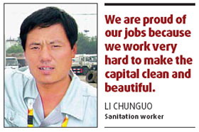 Sanitation workers have a different attitude now about their jobs. "When I first came here, many workers saw their jobs as a means to come to Beijing to make a living when they had no other choice," he said. "No Beijing residents wanted to do the job."