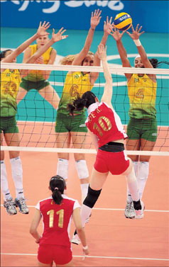 Brazil, the world No 1 side, was too good for China and overcame the hosts 27-25, 25-22 and 25-14 in a one-sided game in which the hosts displayed many defensive errors.