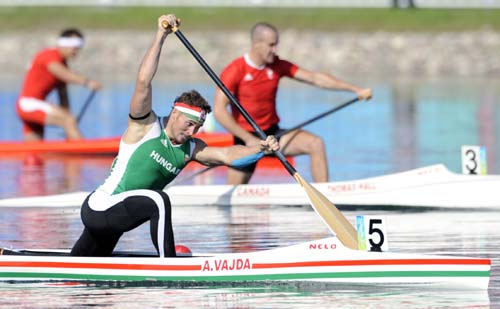 Attila Sandor Vajda of Hungary paddles to win his men's canoe single C1 1000m final of the Beijing 2008 Olympic Games at Shunyi Olympic Rowing-Canoeing Park north of Beijing, August 22, 2008. [Agencies]