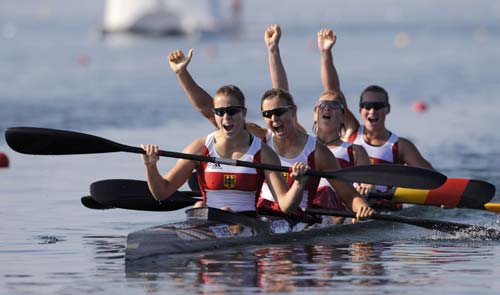 BEIJING -- Germany claimed the women's kayak four (K4) 500m title in one minute and 32.231 seconds at the Beijing Olympics on Friday.