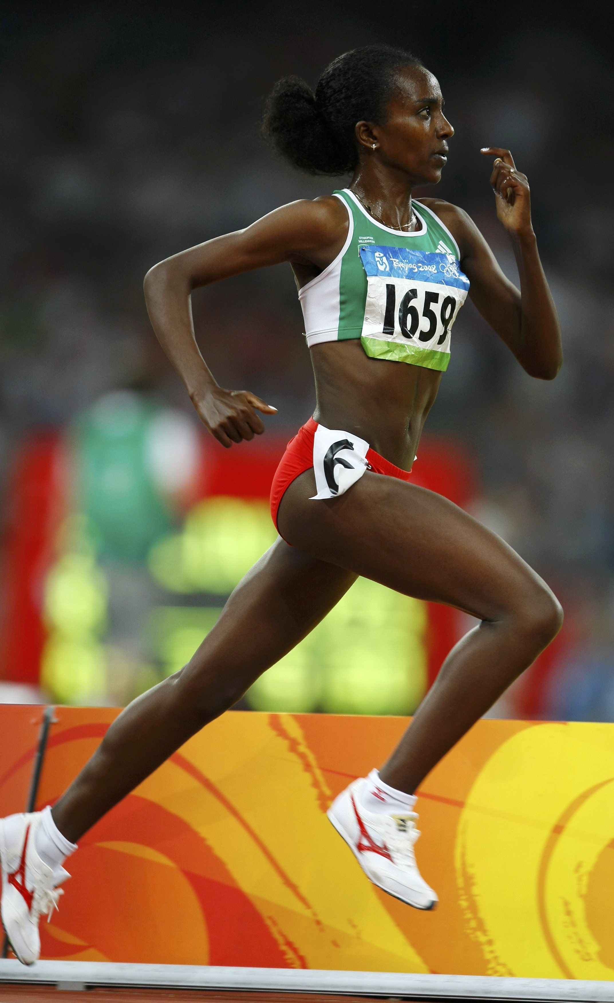 | Tirunesh Dibaba of Ethiopia runs on her way to winning the women's 5000m final of the athletics competition in the National Stadium at the Beijing 2008 Olympic Games August 22, 2008. [Agencies] |