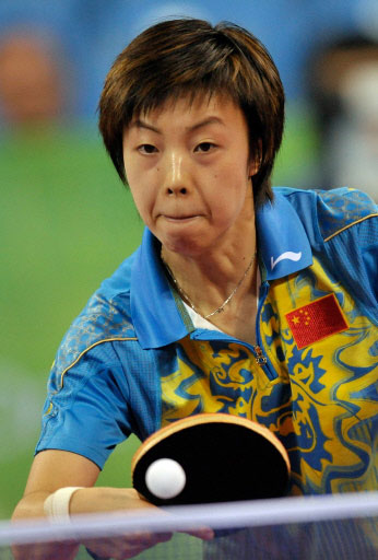 China's Zhang Yining plays against Singapore's Li Jiawei in their women's singles table tennis semi-final match at the 2008 Beijing Olympic Games on August 22, 2008.[Agencies]
