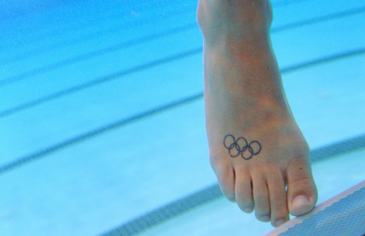 Tatooed foot of a player of Australia is pictured during the 2008 Beijing Olympic Games women's water polo match Hungary vs. Australia on August 13, 2008. Hungary drew with Australia 7-7. [Agencies]