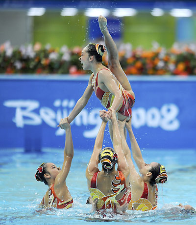 China's team performs in their synchronised swimming team free routine final at the Beijing 2008 Olympic Games August 23, 2008. [Agencies]